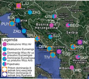 Kao što sam već rekao Wizz Air i Eurowings su za sada podijelili tržište. Wizz Air oslonac ekspanzije ima u Makedoniji, Crnoj Gori, Srbiji i BiH, dok je Eurowings dominantan u Hrvatskoj i Kosovu, a najavljuje ekspanziju na Sloveniju i BiH. No, indikativno je da Wizz Air širi broj letova u Sloveniji i Hrvatskoj, kao i što Eurowings otvara nove linije za BiH i Crnu Goru, a krenuo je i sa letovima za Makedoniju, u kojoj je bila totalna dominacija Wizz Aira. Trenutno na 6 aerodroma lete obije kompanije, a u istom broju kompanije nemaju konkurenciju one druge. Reklo bi se, krenulo je. Kompanije moraju ući u tržišta one druge, a obije su prisiljene na ekspanziju, prvenstveno radi širenja flota, ali i na strateški interes ekspanzije na ovim prostorima.
