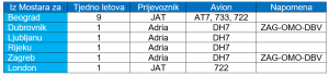 Nažalost nakon operacija prve zime sa tri tjedna leta, Air Serbia je ove zime 2025/26 smanjila broj letova na dva tjedno. Ipak cijeli ljetni red letenja 2026. i dalje leti tri tjedna leta. Interesantno ali Mostar ima više letove za Beograd od veće i „srpske“ Banja Luke.