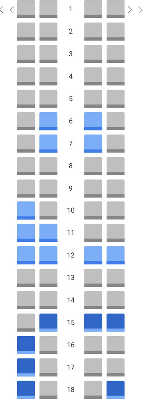 Na danasnjem letu nije bilo prebacenih putnika od juce, proverio sam sa svojim izvorom u JU koji mi je i nabavio mapu kabine. Na podnevnoj BUD juce je trebalo da bude 48 putnika, njih 19 je prebaceno na jutarnji let, njih 21 na vecernji, dok je 8 putnika uzelo refundaciju.