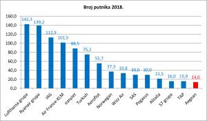 | Broj putnika 2018 | 2,2 milijuna | 13,9 milijuna | 6,3x |